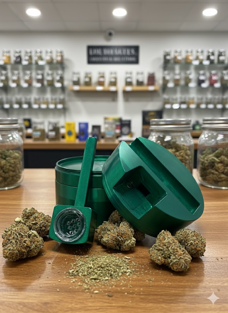 • A full herb-grinding setup with a built-in smoking pipe.